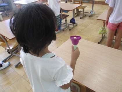 子どもたちが興味・関心のある曲をハンドベルで演奏しました。「手首を使って前に振ってごらん。」と伝えると「リーン。」ときれいな音を鳴らすことができました。これからハンドベル以外の楽器も含めて合奏ができるように練習していきます。