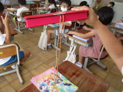 昨日の算数の時間は、2本のひもの長さを比べる方法を考えました。