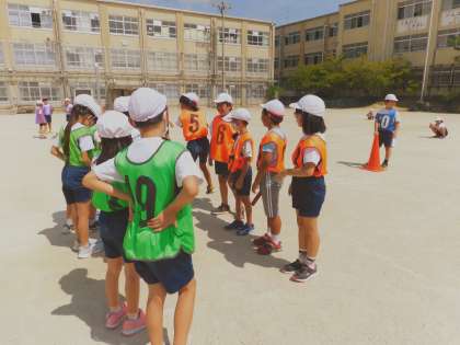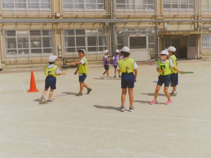 体育科では、表現運動と並行して、リレーの学習も行っています。