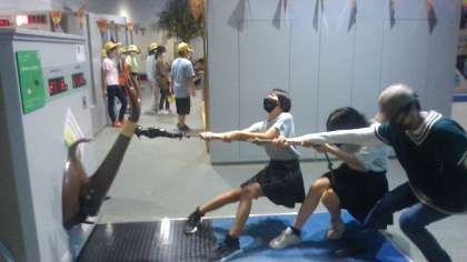 すたむらんどには屋内でも活動できる科学館があり、子どもたちは科学の仕組みを使った様々な装置に触れ、楽しんでいました。