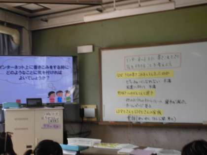 SNSの投稿に関わる危険性について学びました。SNSに投稿する前に本当に正しいことが伝わるか考えること,周りの人の気持ちを考えて投稿することなどみんな真剣に話し合いました。具体的な自分のめあてをもつことができたと思います。これからもSNSを正しく活用できるようになっていってほしいと思います。