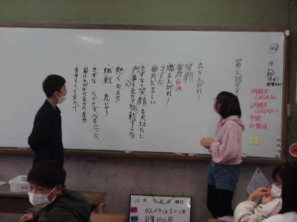 砂リンピックに向けて,1年生から6年生までみんなががんばれるスローガンを考えました。司会や書記もみんなで分担して意欲的に話し合っていました。