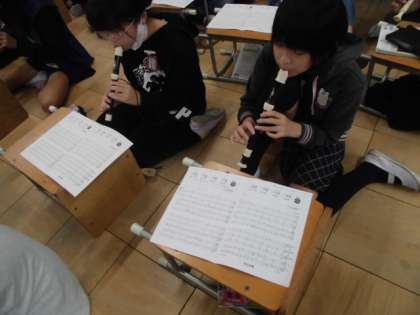 雨のうたの情景を思い浮かべながら,リコーダーの練習をしました。短調と長調の変化に着目しています。高音もとてもきれいに演奏できるようになってきました。