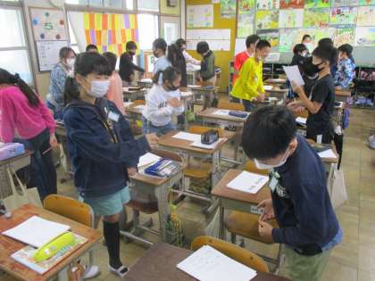 外国語科の学習では、新しい単元に入り、新しい言葉に出合いました。