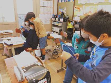 今日の理科の学習では、秋と夏のはくちょう座を比べて、気づいたことを話し合いました。そこから、「時間がたつと、星の位置やならび方はどのように変わるのだろうか。」という学習問題をつくり、予想しました。