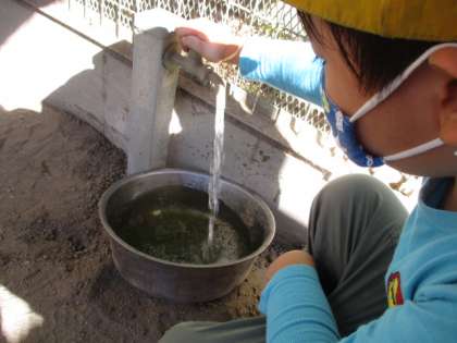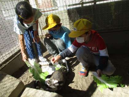 毎日,順番に2〜3人ずつ うさぎのえさやり体験をしています。