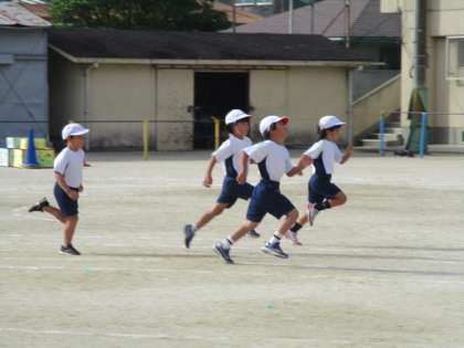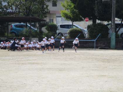1年生の50m走。ゴール目指して、レッツゴー!