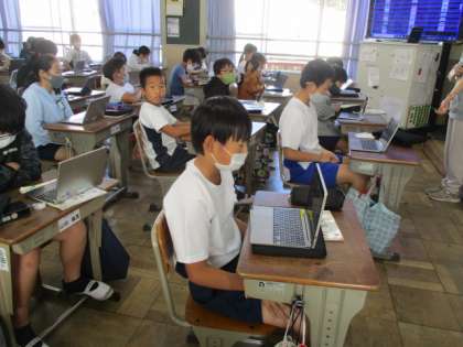 5年生は、今日は家庭科でタブレットを使用していました。整理整頓のビフォアアフターを端末に記録して比較したり、整理整頓の工夫を話し合ったりしたようです。
