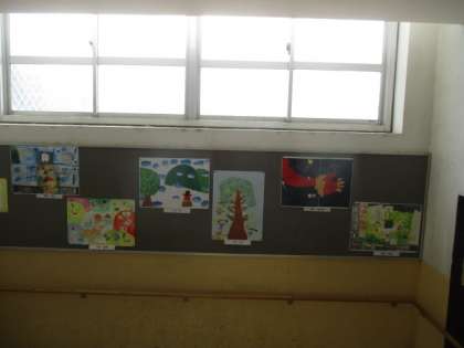 おはなしの絵を 階段の踊り場に