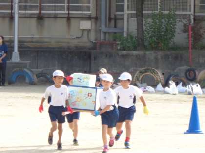 今年の学年演技は、ダンスに加えて「おみこしリレー」をしました。