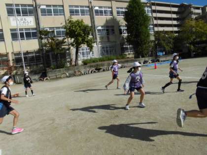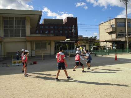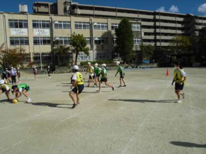 ルールを確かめながら,リーグ戦をしていきます。子どもたちは、ボールを持ってゴールにめざして全力で走っていました。
