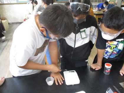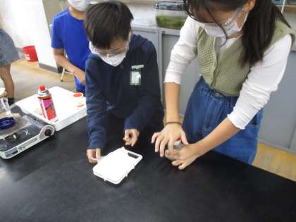 子どもたちは重さを量ったり、蒸発させたりと複数の実験を自分たちでしました。