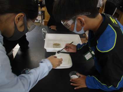 理科では、水に溶けた食塩は無くなったのかについて、自分たちで調べる方法を考え、その実験をしました。