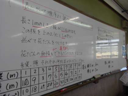 表にかいて、問題を整理していくと答えが求められることが分かりました。ペアで表に整理したことを確かめました。表に整理することのよさを学びました。