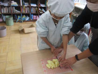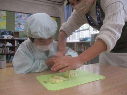 「さつまいも、かたーい。」「おお、切れた!」と様々な声が聞こえてきました。