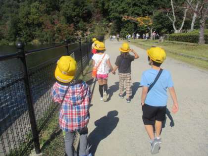 宝が池で1年生は秋見つけ、2年生はクイズラリーをしました。