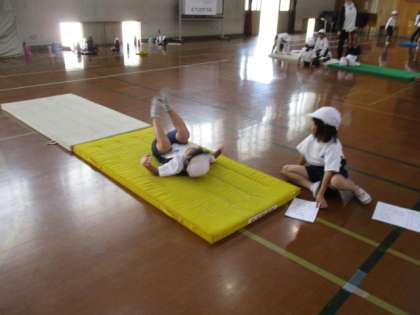 今日は自分ができるようになりたいわざを決めて練習しました。ペアの友達とチェックしあうことで、できるわざがだんだん増えてきました。