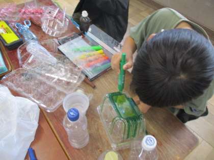 自分のオリジナルの生き物をいろいろな材料を組み合わせてつくっていました。