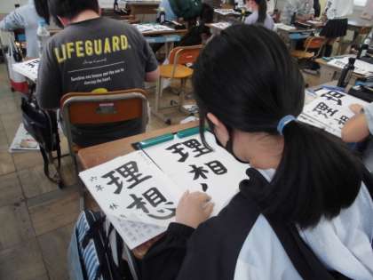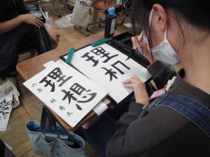 二つの文字の中心をそろえることに気を付けて書きました。姿勢よく、集中して取り組んでいました。