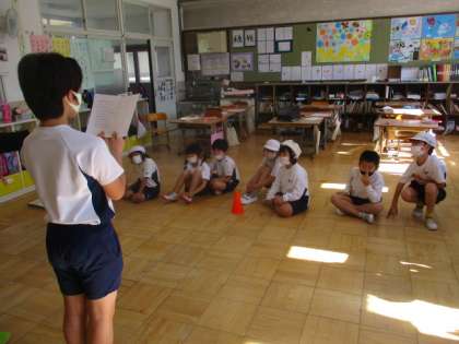 そして、合同運動会の終わりの言葉を砂川小学校が担当するため、代表の子どもがゆっくり、はっきりと話すことを意識して練習しました。