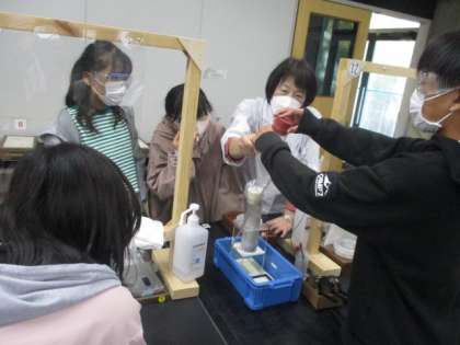 最後に、「石灰岩に塩酸をかけた時に発生する気体が何か」を調べるための実験を行いました。