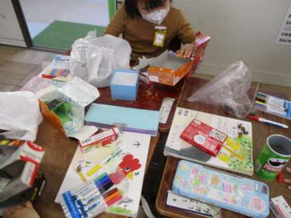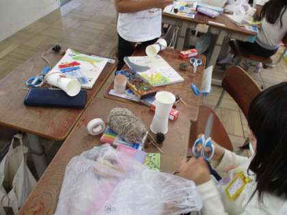 今日は,その宝物を使って,こまやけん玉などを作って