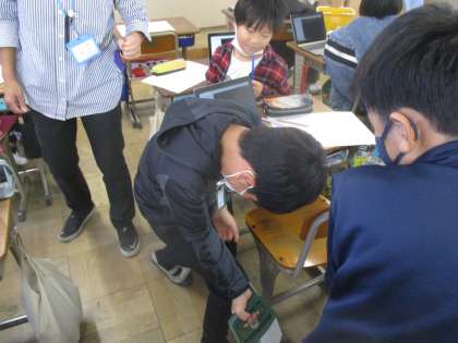 授業の最後には、歯を長生きさせるための歯磨きの仕方を学習した。