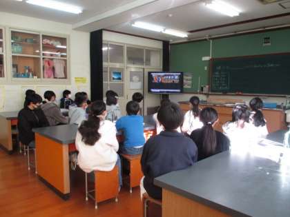 まず最初に各教室に分かれ、藤森中学校についての紹介ビデオを見せていただきました。