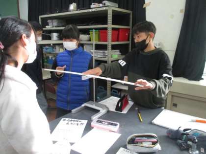 班でレールを実際に動かしながら、遠くに飛ばす方法を様々なやり方で試してみました。