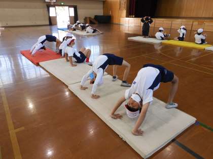 今日から、マット運動の学習が始まりました。