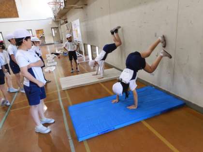 体ならしでは、早速コツを見つけたと、学級の仲間に紹介してくれる場面もありました。