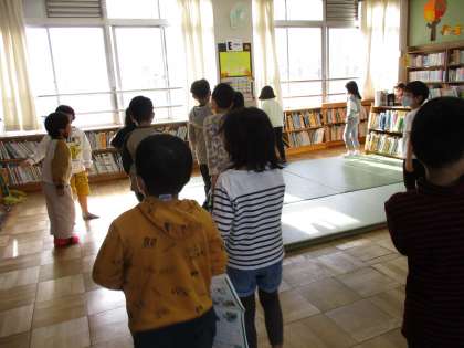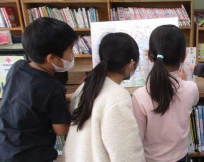 国語で外国の昔話の本について学習しています。1時間目に、学校図書館のどこに外国の昔話の本があるか探してみました。子どもたちは「ここらへんだと思うけどな。」といいながら置いてある場所を見つけることができました。