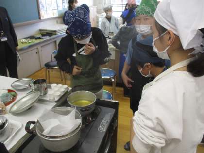 家庭科では出汁を取って、旨味を感じる学習をしました。