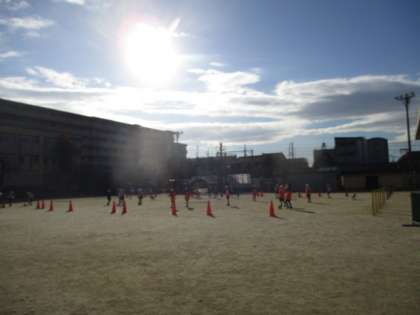 体育の時間は,ボールけりゲームをしています。