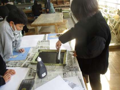 こども達は、自分の彫りがきちんとできているかドキドキしながら刷っていました。