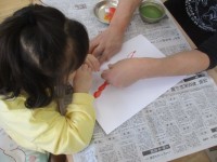 みんなで机を合わせて、ケラケラ笑いながら、とても楽しそうに絵を描いていました。