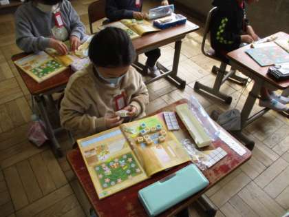 算数の学習では数図ブロックを使って、数の大小を確かめました。