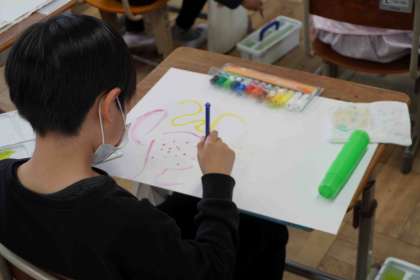先週の金曜日、図画工作科の学習「絵の具+水=いいかんじ!」がありました。