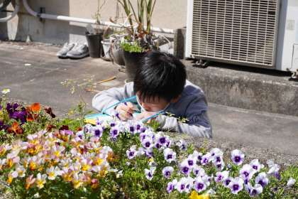 春になると、動物や植物が顔を出してきています。どんどん探しては、観察カードに記録をしていく子どもたち。どんな生き物を観察したのか、おうちで聞いてみてください。
