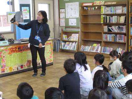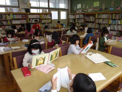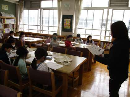 まずはじめに、第1図書館で担任の先生と学校司書の読み聞かせを聞きました。みんなで1冊の本を読むことができてとても楽しかったですね。そのあと第2図書館に移動して図書館の使い方を確認したり、読書のめあてや記録を書いたりしました。本校の第2図書館では調べ学習ができるようになっています。今年度も2つの図書館でたくさん活動していきましょう。