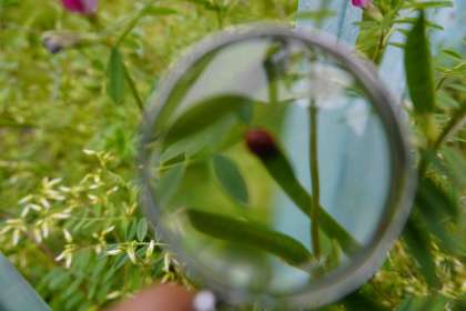 虫眼鏡を使って、前回よりも細かい部分まで見て観察をする姿ありました。