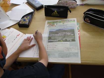 自分が選んだ春の行事についてカードを書きました。行事の本や言葉の本、京都の本や百科事典などから調べて説明を書きました。図書以外でも京都のめずらしい行事を新聞記事から見つけることもできました。イラストを添えてさらにすてきなカードになりましたね。