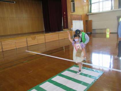 今日は、「交通安全教室」がありました。警察署の方と地域の方に来ていただき、道路の安全なわたり方について学習しました。今日学んだことを、普段の生活に生かしてほしいと思います。