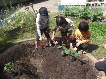 「早く収穫したいな。」「楽しみだな。」と野菜の成長を楽しみにしています。