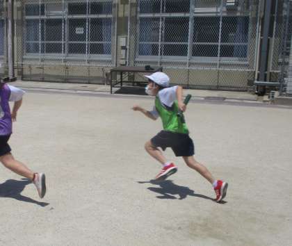 今日も、雲一つない青空のもとリレー学習に取り組みました。