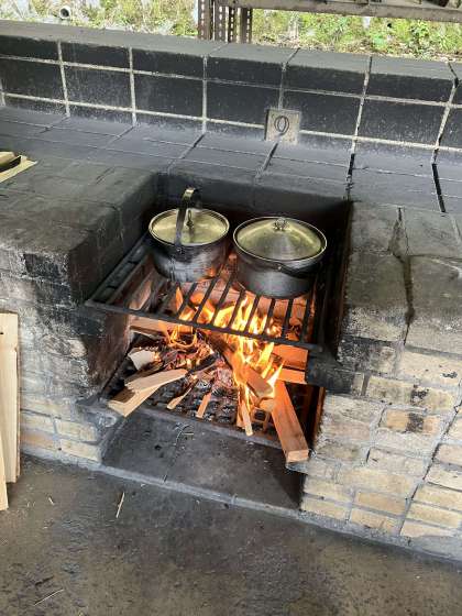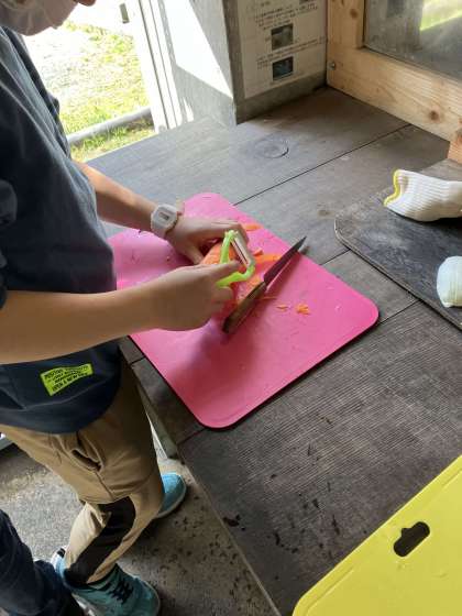 ご飯係、おかず係、火おこし係に分かれ、活動スタートです。