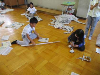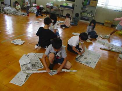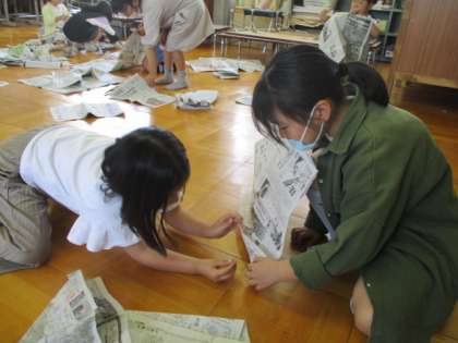 図工で新聞紙を使って学習しています。