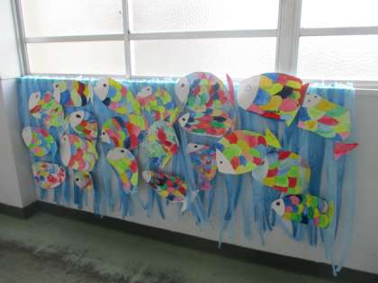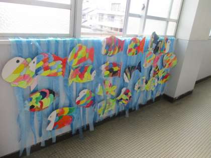 2年生のカラフルお魚さんたちが、廊下で泳いでいます!