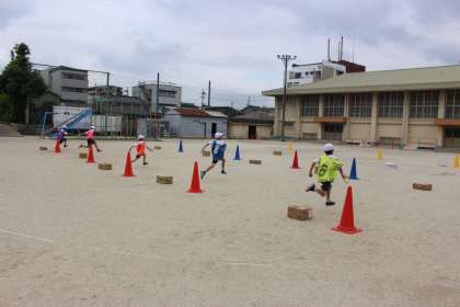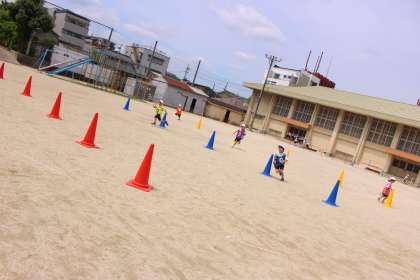くねくねしたり、コーンの周りをぐるぐるしたり
