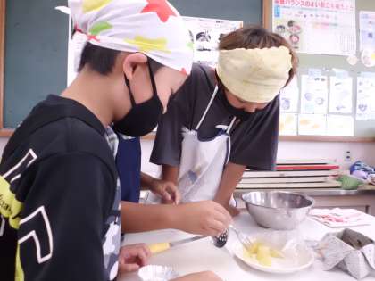 包丁を使ったり、お鍋で野菜をゆでたりと、グループ一丸となって調理しました。